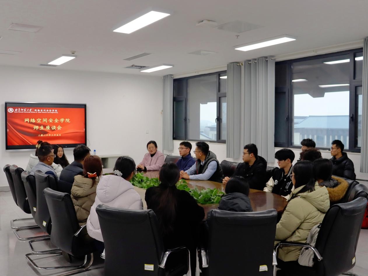 在格物楼A504会议室召开“开学反诈第一课”暨师生座谈会。学院党委副书记范瑞红、全体辅导员及学生代表现场参会,全院其余学生在致知楼B101等教室同步收看直播。