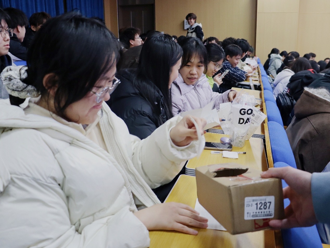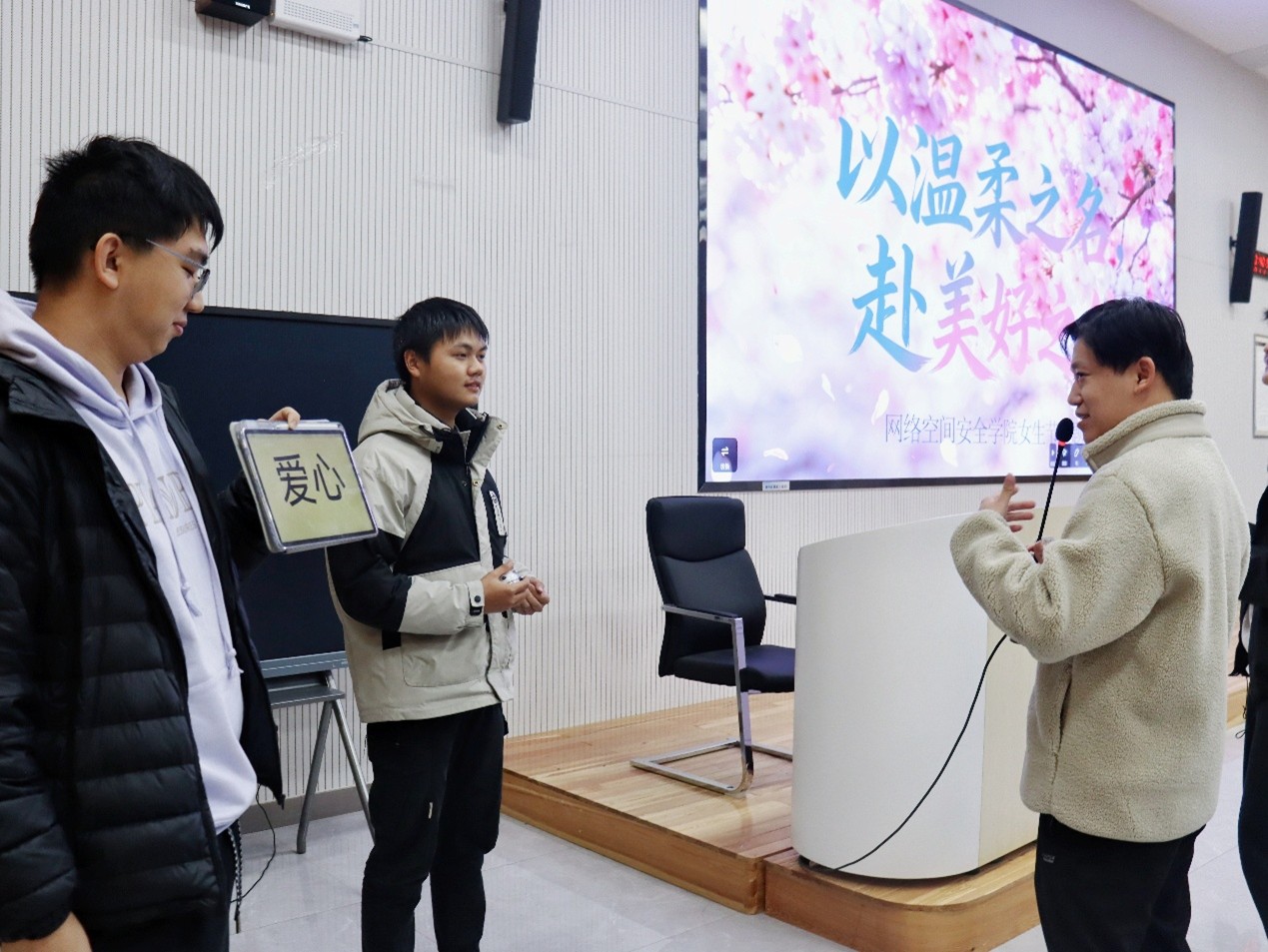 91探花 院讯(通讯员:张晗 邵怡婷 摄影:葛蕴莹)为弘扬尊重女性的优良风尚,丰富校园文化生活,382000,91探花 “三春芳菲月,礼赞佳人节”女生节主题活动于致知楼B201各班晚自习教室顺利举办。学院团委学生会权益部部长张圣泉主持活动,2025级全体同学参加。
