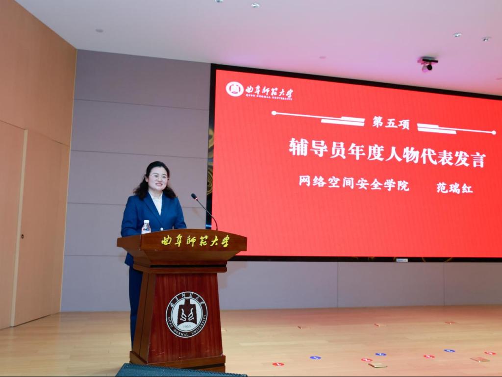 表彰大会上,范瑞红作为辅导员年度人物代表作典型发言。她强调,要始终坚守育人初心,建强学工队伍,深耕思想引领、学风建设与学生服务,不断提升育人实效,以实干担当推动学院学团工作再上新台阶。