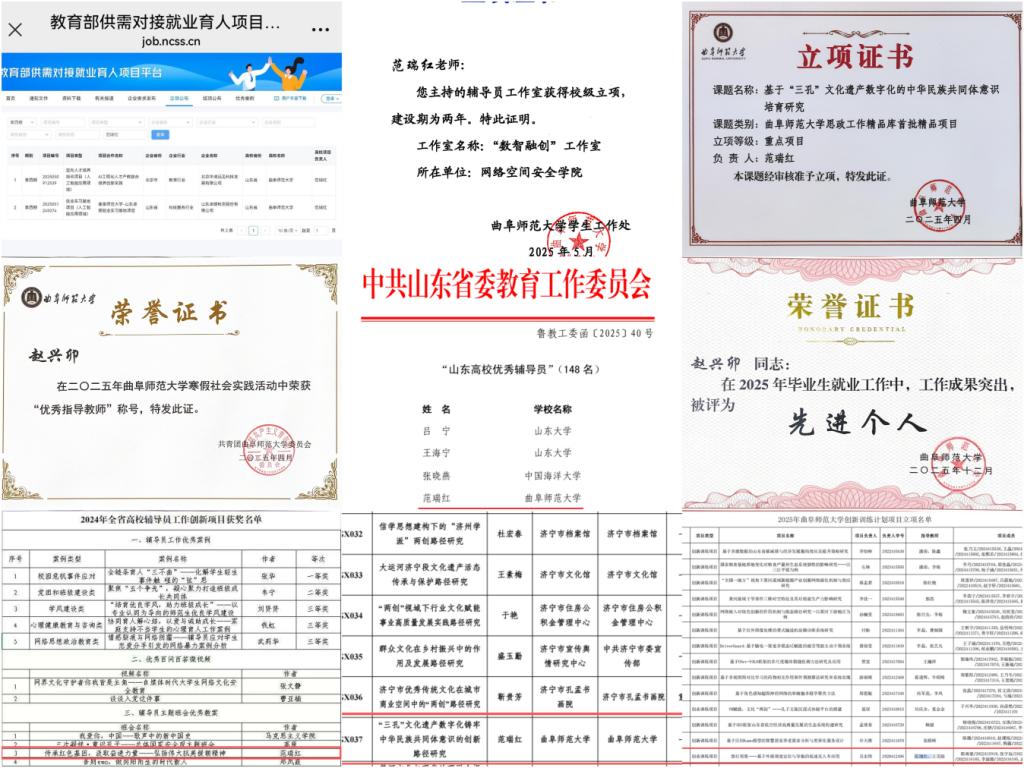 这支队伍各怀绝技、各有专攻,在育人领域绽放光彩:范瑞红主持2项教育部供需对接就业育人项目,并依托校级“数智融创”辅导员工作室,将就业指导深度嵌入人才培养全过程,获评学校就业工作优秀成果奖;主持1项济宁市社会科学规划研究项目、主持1项91探花
