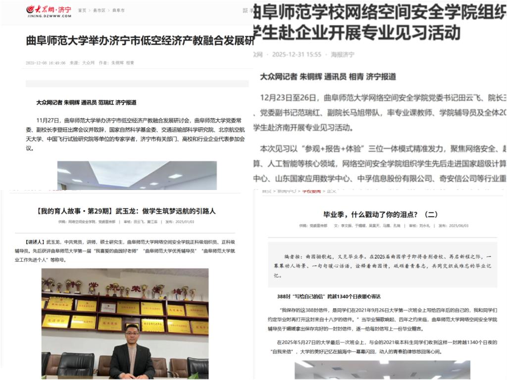 他们紧密围绕党建思政、教学科研、学生成长等中心工作,策划宣传主题。一年来,不仅通过学院官网发布新闻170余篇,更积极向“中国青年网”“齐鲁晚报”“大众网”等国家级、省级主流媒体投稿15篇,在学校官网发稿10篇,全方位、多维度展现出学院师生锐意进取、笃行实干的精神风貌。