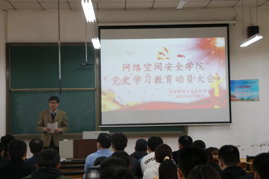 召开党史学习教育动员大会,深入学习贯彻习近平总书记在党史学习教育动员大会上的讲话精神和学校党委书记戚万学同志在学校党史学习教育动员大会上的讲话精神。全体师生党员参加会议,学院党委书记田云飞作党史学习教育动员讲话,院长王茂励主持会议。