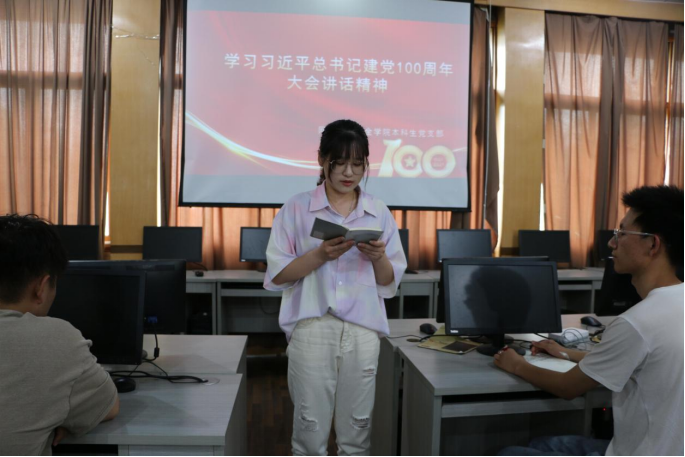502教室举行了关于学习习近平总书记讲话精神的党日活动。