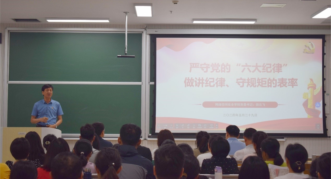 “严守党的‘六大纪律’做讲纪律、守规矩的表率”主题党课于格物楼B107教室召开。学院党委书记田云飞、院长王茂励、党委副书记范瑞红、副院长马旭、各党支部书记以及全体教职工参加会议。田云飞主持本次会议。