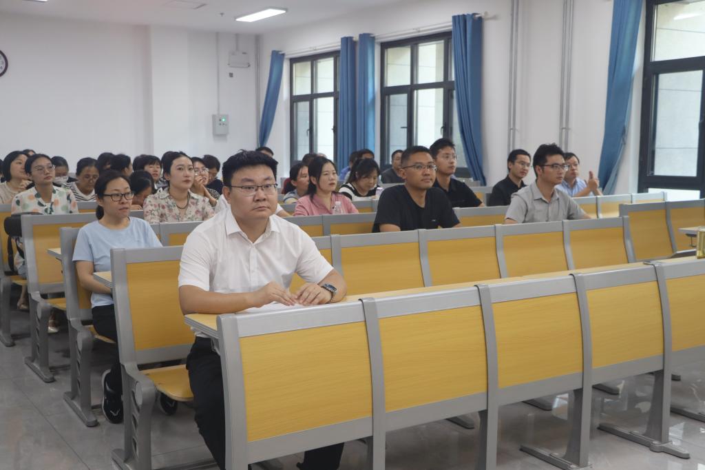于格物楼B座107教室召开全体教职工政治理论学习会议。党委书记田云飞、院长王茂励、副书记范瑞红、副院长马旭及全体教职工参加会议,田云飞担任主讲。