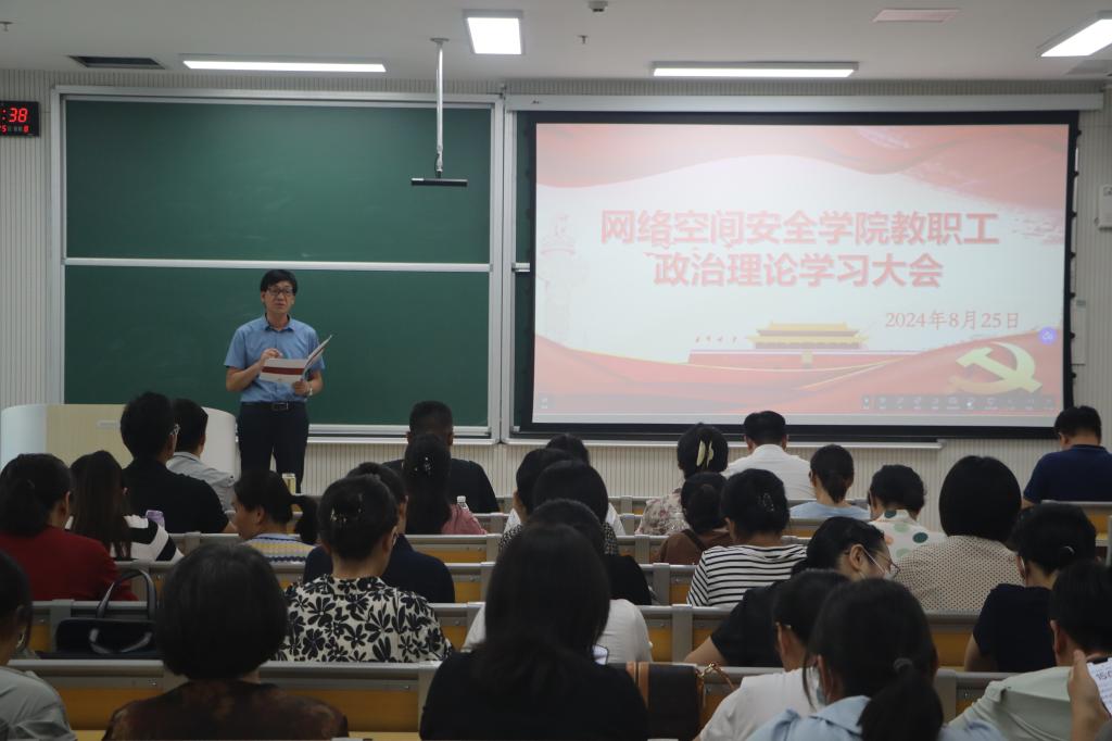 田云飞强调,实现高水平科技自立自强、建设科技强国使命光荣、责任重大,我们要牢牢把握高质量发展首要任务,守正创新、砥砺前行,年初部署的各项任务稳步推进,新时代孔子家乡大学建设迈出坚实步伐。我们学院作为山东省一流网络安全学院,要做好人才培养和科研创新工作,为国家和社会培养具备扎实专业知识、创新能力和实践能力的网络空间安全专业人才,要按照全会做出的重大战略部署,结合网安学院职能职责,以科技创新引领新质生产力发展,不断为社会输送网安人才。
