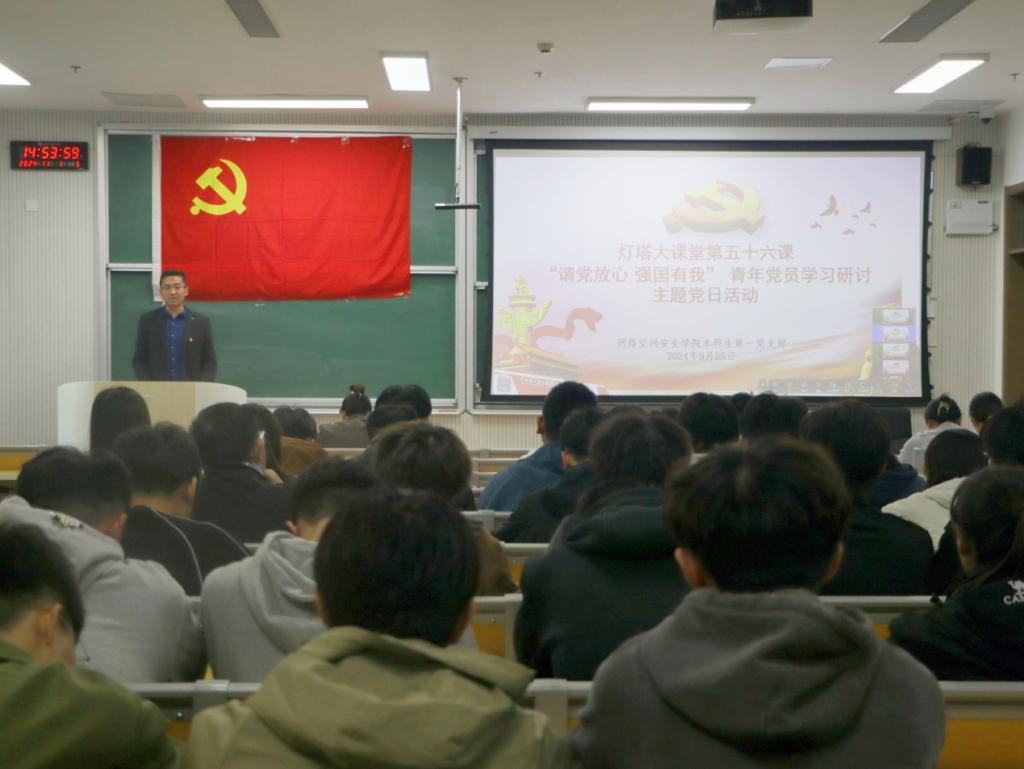 灯塔大课堂第五十六课“请党放心 强国有我”青年党员学习研讨主题党日活动于格物楼B106顺利开展。学院党委副书记范瑞红、本科生各党支部书记、辅导员参加本次活动。