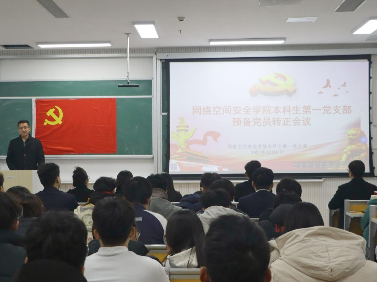 各本科生党支部预备党员转正会议于格物楼B103顺利召开。党委副书记范瑞红、本科生第一党支部书记武玉龙、本科生第二党支部书记丁允念、本科生第三党支部书记于媚媛、辅导员相青、洪亚玲、赵兴卯以及各党支部党员参加本次会议。