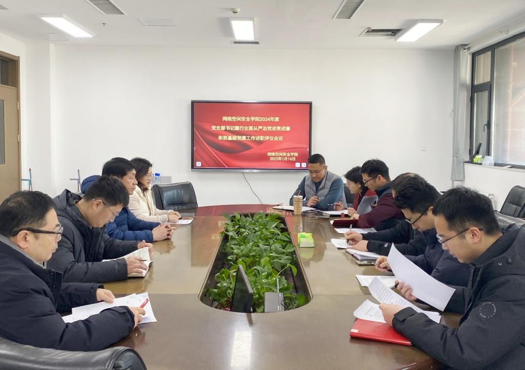 2024年度党支部书记履行全面从严治党述责述廉和抓基层党建工作述职评议会议于格物楼A504会议室召开。学院党委书记田云飞、党委副书记范瑞红、副院长马旭和学院教工、研究生、本科生各党支部书记参加会议。