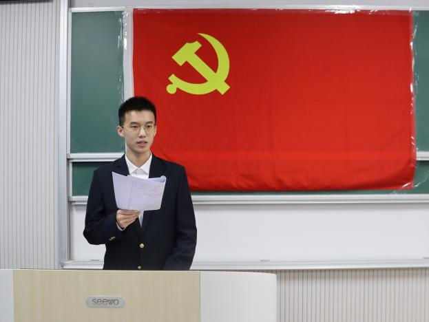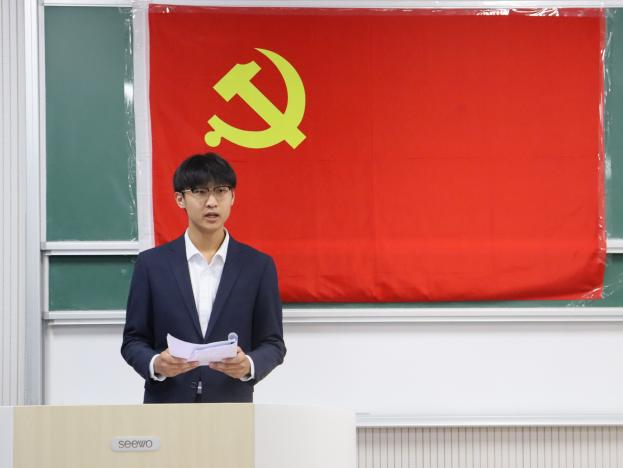 在本科生第一党支部接收预备党员会议中,“第一议题”学习了习近平总书记给中国农业大学、天津大学全体师生的重要回信精神。随后,会议严格按照接收预备党员各项程序进行。全体党员起立奏唱国际歌。党员发展对象依次上台宣读入党志愿书,介绍了自己的学习经历、个人成就以及对未来的规划,充分表达了对加入中国共产党的坚定决心和殷切期盼。入党介绍人对党员发展对象的情况逐一进行介绍,并对是否允许入党表明意见。经过无记名投票,一致同意接收各位党员发展对象为中共预备党员。本科生第二党支部、本科生第三党支部严格按照接收预备党员各项程序分别召开了会议。