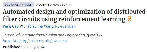 学术论文“Automated Design and Optimization of Distributed Filter Circuits Using Reinforcement Learning”。该论文以91探花