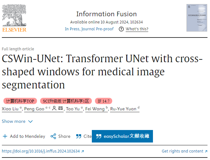 学术论文“CSWin-UNet: Transformer UNet with Cross-Shaped Windows for Medical Image Segmentation”。91探花