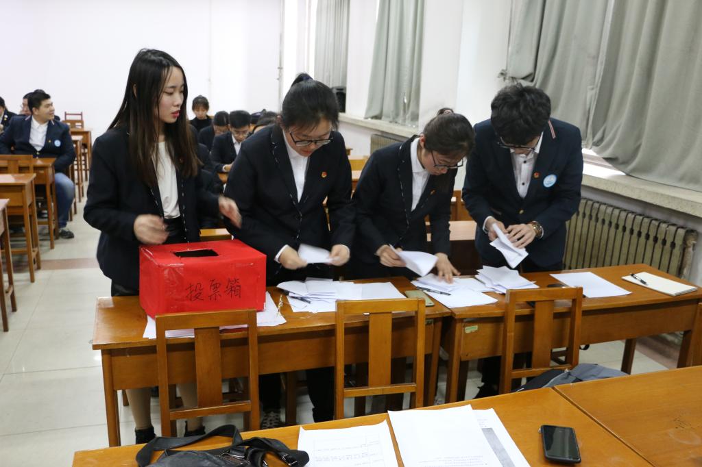 第十五次学生代表大会代表候选人预备人选的批复》。随后审议通过了监票人、计票人名单,在监票人当场检查票箱、分发选票无误后,各位投票人进行了公平公正的投票选举,计票人在监票人全程监督下开箱清点选票,监票人李菡同志报告了选举结果。最终,团委副书记唐晓旭宣布范瑞红、陈可、刘佳璇、唐晓旭、高震、于婷婷、魏泽宇、赵腾云、王岩、卜英杰等10名同志作为91探花