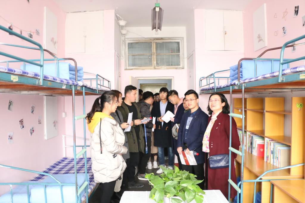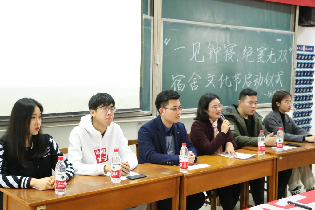 启动仪式结束后,李扬老师和范瑞红书记还有主席团的成员们进入18级学生宿舍进行卫生与宿舍装饰检查。同学们充分发挥想象力和创造力,装饰墙壁、天花板、门窗等,通过为桌椅贴上贴纸、悬挂书法作品、摆放富有特色的装饰物等方式,完成了风格迥异的寝室设计与布置。本次宿舍文化节分为宿舍文化装饰大赛与宿舍文化PPT微视频大赛两部分,比赛投票采用线上最美宿舍评比,最终结合线上投票与现场打分两部分给出综合分数,评出各优秀宿舍并颁发荣誉证书。