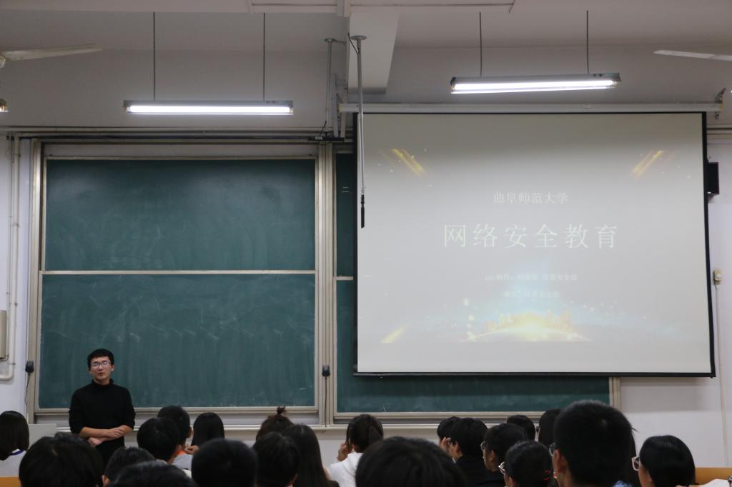 通讯(通讯员:范瑞红、徐雪婷)近年来,网络诈骗事件盛行,为提高学生的安全防范意识,网络部、信息安全部在综合楼705为20级新生开展了网络安全教育讲座,信息安全部刘源担任主讲人,20级全体新生参加此次讲座。