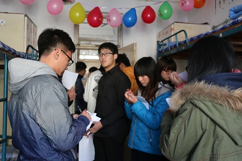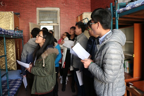 软件学院宿舍文化节活动正式拉开序幕。下午3时,学生会评委人员参观各个宿舍并进行评比。
