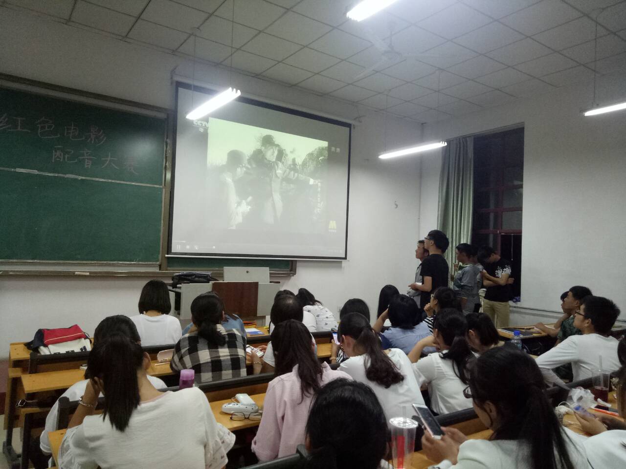 为迎接党的十九大召开,培养同学们的爱国热情,软件学院党委在 “两学一做”学习教育中,开展“喜迎十九大、党员当先锋”主题党日活动。9月28号晚上,软件学院组织部以“重温红色经典,演绎时代之音”为口号,在西联教室举办“红色电影配音大赛”。入党积极分子和全体17级新生们参加了本次比赛。活动旨在让大家重温那些展现崎岖而光辉的革命历程,充分调动学生们的爱国热情,发挥学生们的表演天赋和创作才能。上场的各位同学利用特色方言、严肃对白,出色地将影片片段的庄重感和神圣感一一表现出来,博得观众们的阵阵掌声。多支队伍生动再现了影片场景,重温红色经典,传递爱国情怀,台下观众们意犹未尽,报以热烈掌声。