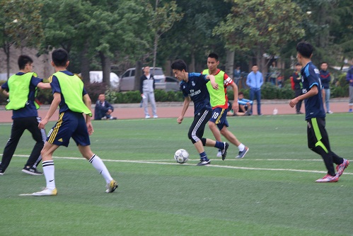 2016年毕业杯足球赛在西操场正式拉开序幕。软件学院男子足球队对阵数学科学学院男子足球队。软件学院团总支书记杨正运亲临现场,为足球健儿们加油助威。