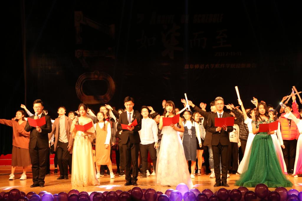 软件学院第三届迎新晚会在大学生活动中心成功举办。出席晚会的领导有地理与旅游学院党委副书记刘伟,美术学院党委副书记毛永正,生命科学院党委副书记赵强,历史文化学院党委副书记王慕东,外国语学院党委副书记曲凤东,经济学院团委书记杜鑫,书法学院团委书记杨玉强,经济学院辅导员尹凯,软件学院党委副书记田凯、辅导员郑凤华,软件学院全体新生到场观看晚会。