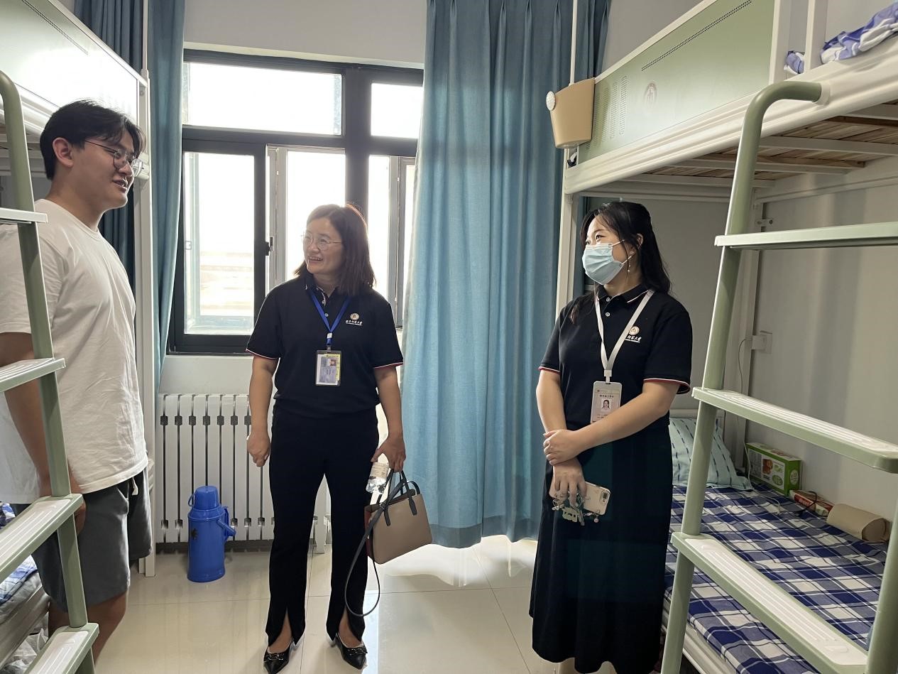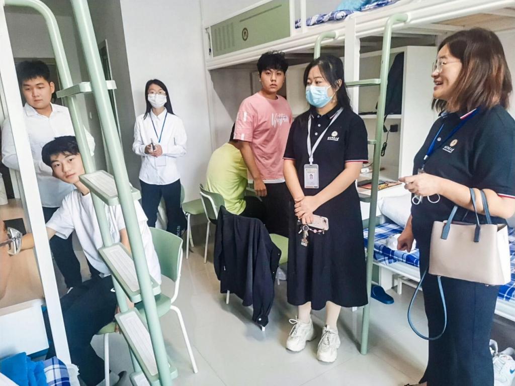 党委副书记范瑞红,团委书记丁允念,辅导员洪亚玲、相青、于媚媛前往2022级新生宿舍慰问新生。