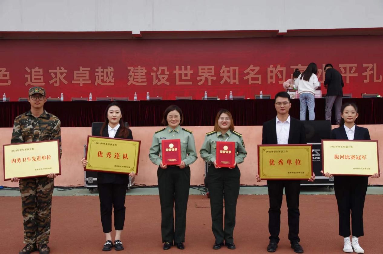 2022级新生军训总结表彰大会在南操场举行。学校党委副书记卢国强,党委常委、副校长胡凡刚,党委常委、副校长纪洪涛,各学院党委书记、各学院党委副书记、2022级辅导员出席本次总结表彰大会。大会分别由学生工作处处长、军训旅副旅长姜美颖,团委书记、军训旅副政委孔轶众主持。