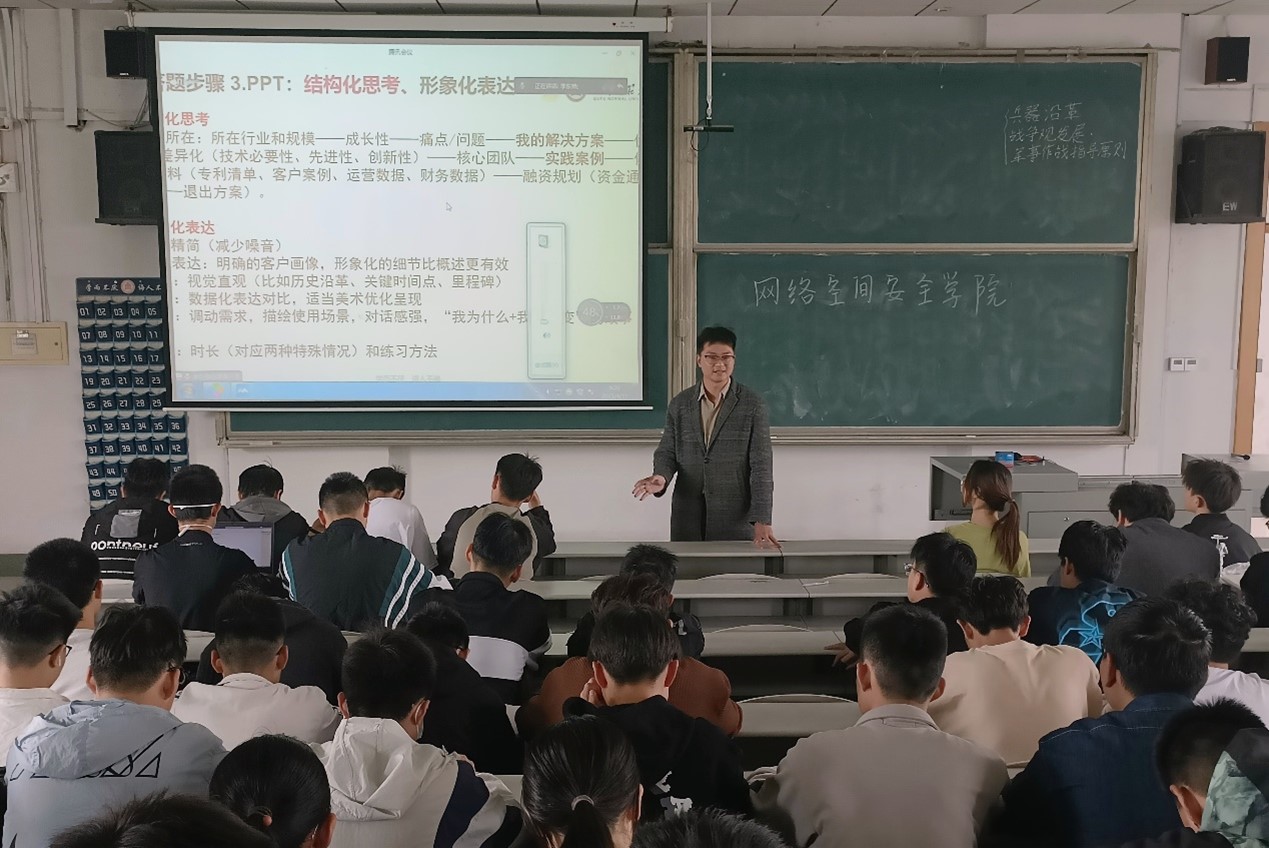 会议从互联网+大赛备赛逻辑、大赛评审规则与模型解析以及大赛前瞻性三个方面对“互联网+”大赛进行全面解读。会议伊始,李东格从参赛流程出发,讲解了如何在活动中选择赛道、拟定主题、起好题目,通过运用真实案例,为同学们构建了大赛的整体框架。随后,李东格向全体人员讲述了参赛项目书的设计、撰写和PPT的结构化思考以及形象化表达,教导同学们使用PPT中图表等工具灵活展现项目内容,并通过展示高质量参赛项目案例,向同学们深度解析答辩的注意事项。会议末,李东格指出参与大赛对学生个人成长具有重要意义,他呼吁全体学生积极参加到各类创新创业活动中来,为学院培养创新创业精神和良好学风的建设做出贡献。
