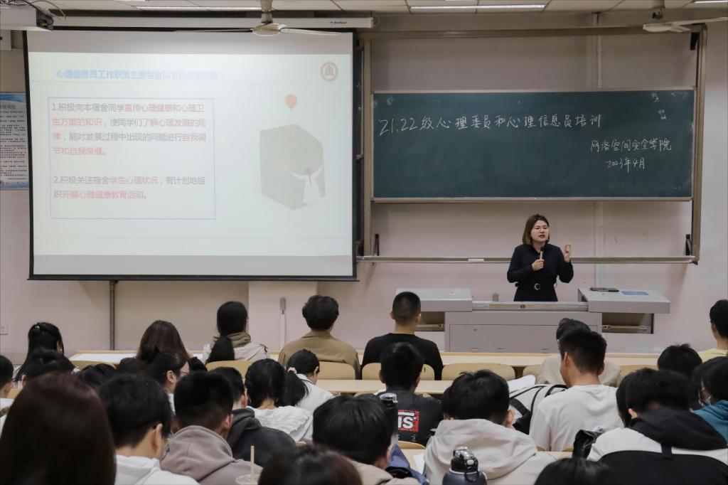 心理委员与心理信息员培训会于实验中心A401教室开展。学院心理辅导员相青担任本次培训会主讲人,21级、22级心理委员和心理信息员参加本次会议。