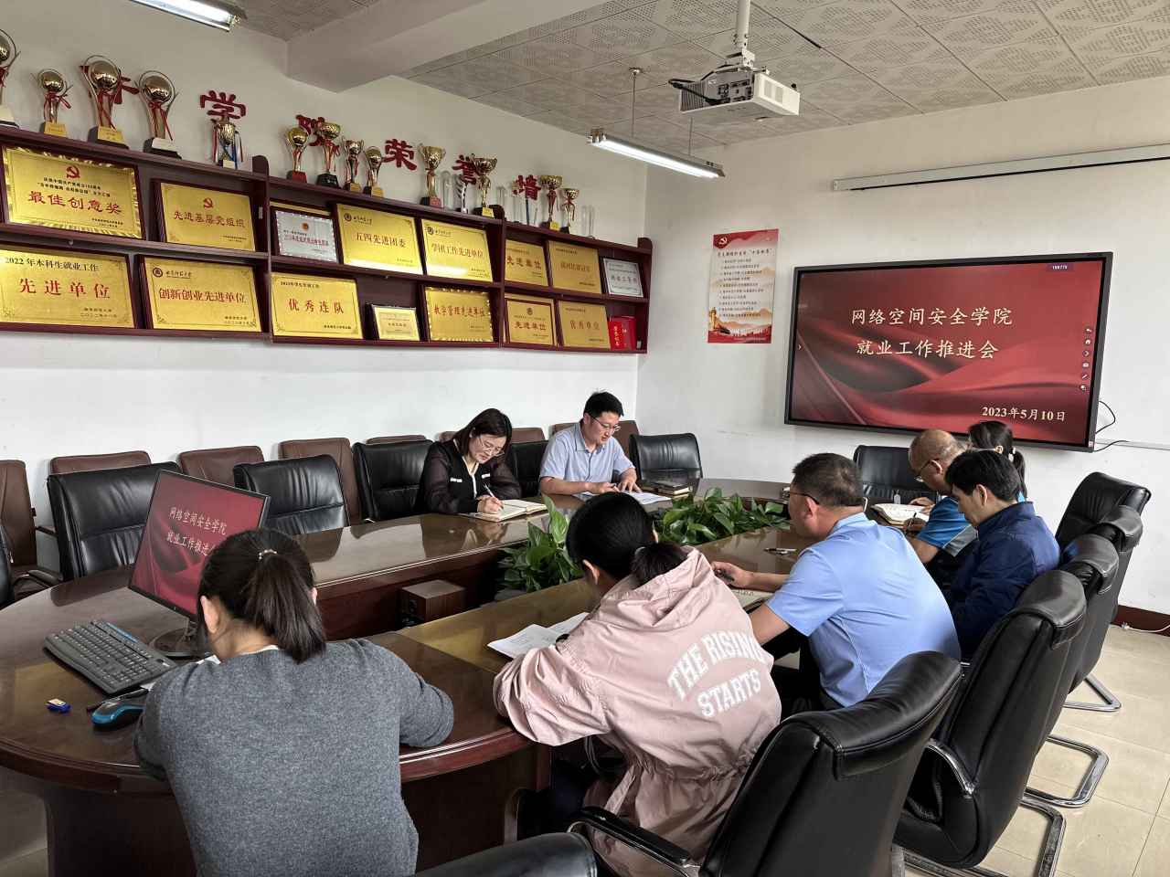 毕业生就业工作推进会在学院会议室410举行。党委副书记范瑞红、副院长马旭、各系部主任、毕业班辅导员参加会议。会议由副院长马旭主持。
