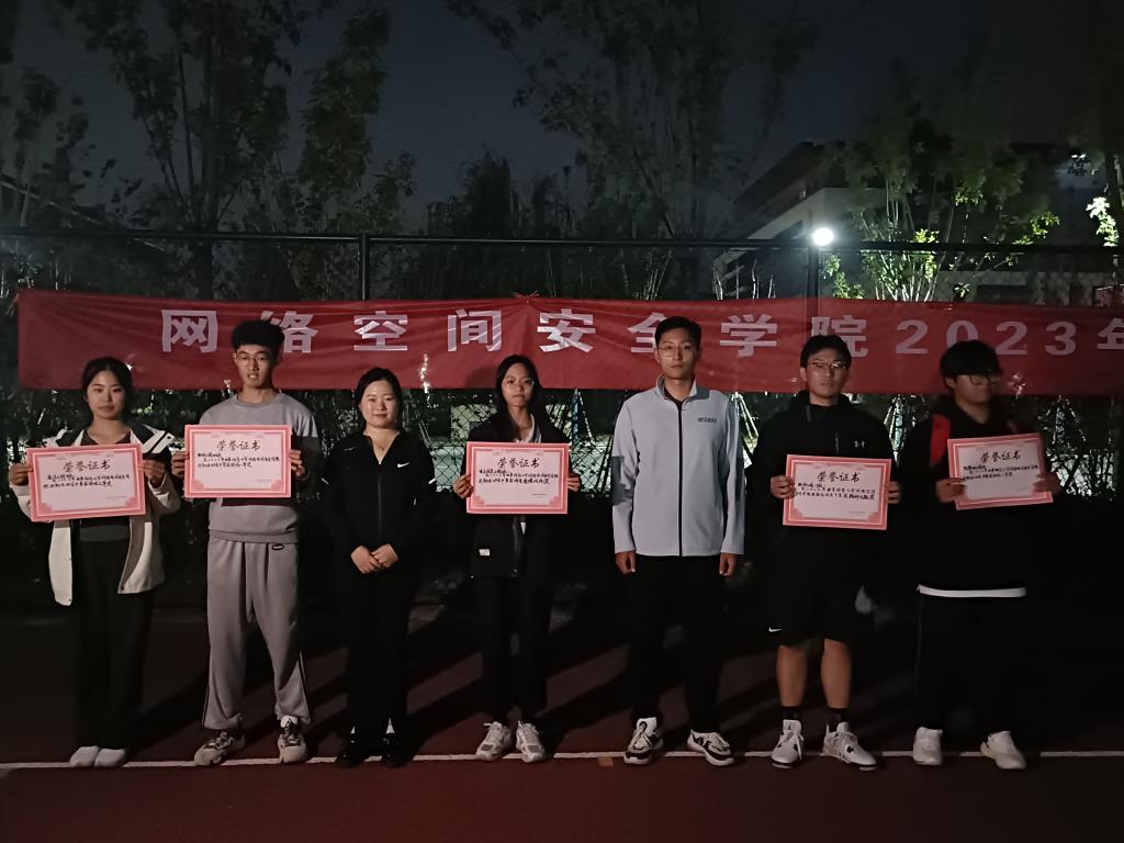 运动会上短跑、长跑、接力跑、跳高、跳远、铅球等各项比赛有序进行。网安学子身姿矫健,用速度与力量、毅力与勇气、团结与奋斗,在青春赛道上向阳、向上、向新、向前。赛场上选手们精神饱满,斗志昂扬,为挑战自我而奋斗,为集体荣誉而拼搏;台下观众竭力为运动健儿们呐喊助威,为运动员们递水擦汗;主持人随时播报现场的比赛情况,热情地宣读着同学们的加油稿,现场气氛十分活跃。同学们昂扬的斗志、不服输的精神,将比赛推向了一个又一个高潮。最终,2023级软件工程四班获得本次迎新运动会团体总分第一名的好成绩,2023级物联网工程班获团体总分第二名,2023级通信工程班获团体总分第三名,软件工程一班荣获体育精神风貌奖,电子信息工程班荣获体育道德风尚奖。