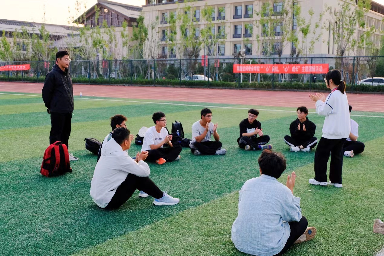 于新校区操场开展“‘心’启航,‘心’成长“主题团辅活动,学院辅导员赵兴卯出席活动,2023级全体学生参加。
