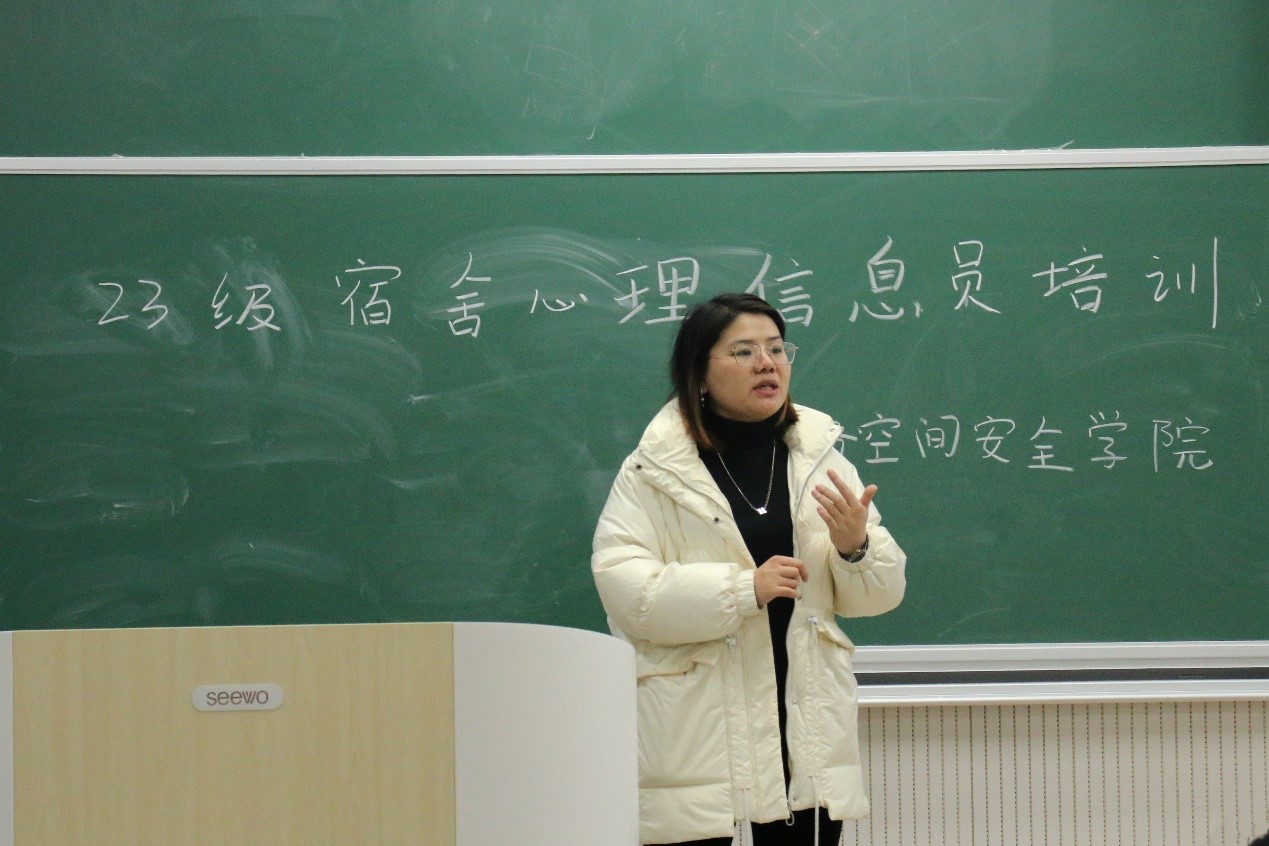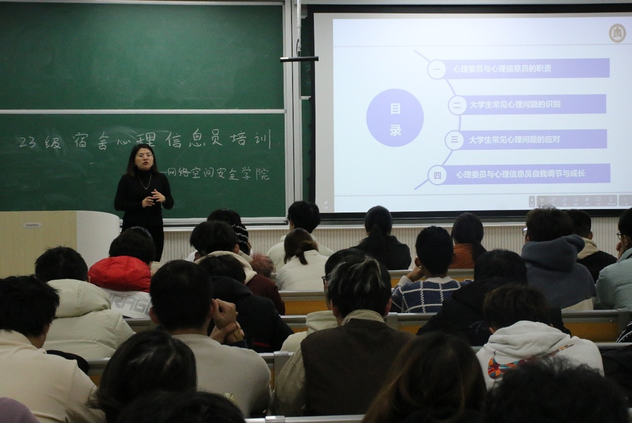 于格物楼B106教室举办了2023级宿舍心理信息员培训活动。本次培训由辅导员相青老师主讲,学院2023级宿舍心理信息员参与本次培训。