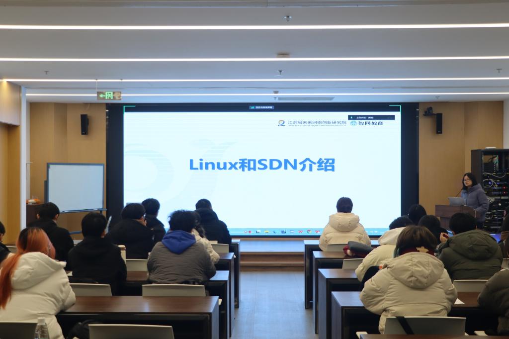 活动首站,学生们来到了南京紫金山实验室进行实地参观学习,观摩当今最新的云网络产品和技术成果展示,了解了云网融合的新型网络发展趋势以及当今通信网络设施基础,充分领略科技创新魅力。此外,学生们还参加了“Linux与SDN介绍”讲座,学习了当下IT技术发展热点和软件定义网络概述,并深入了解了当下时代通信网络基础设施热点平台。