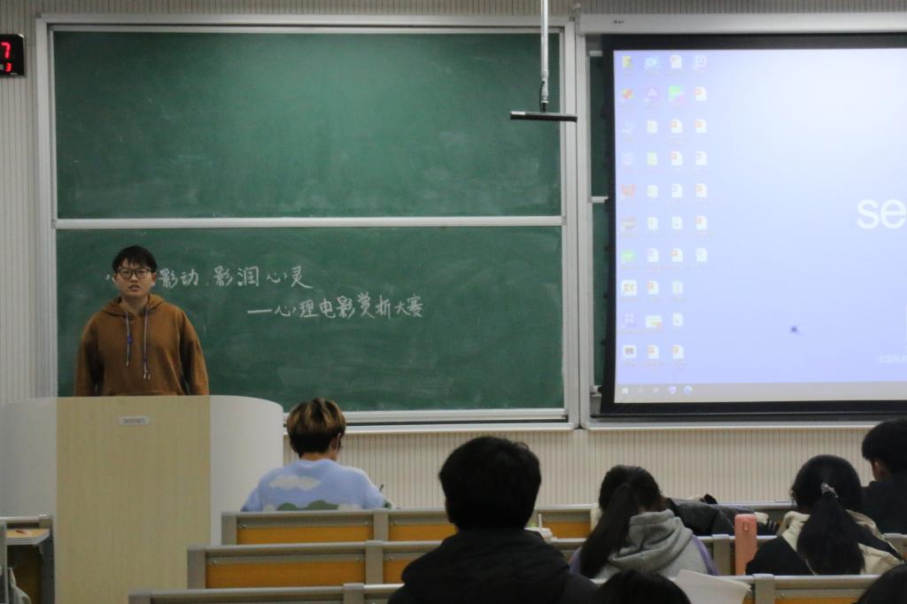 “心随影动,影润心灵”心理电影赏析大赛学于格物楼b105教室举行,通过观看电影的形式,帮助同学们在生活学习上排忧解难,调整心态。学院心理健康部部长刘翔宇组织活动并担任评委。