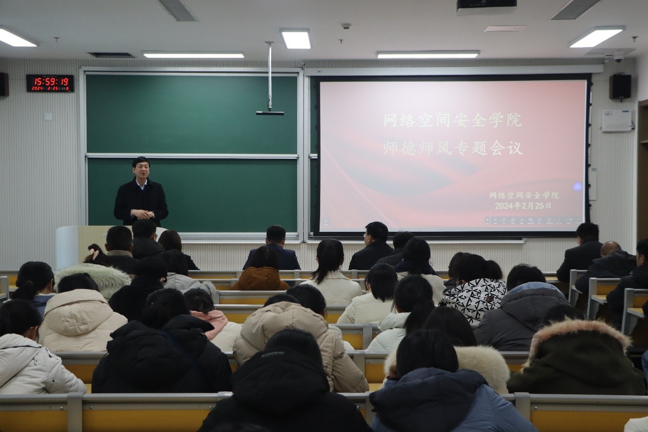 师德师风专题会议于格物楼B107教室召开。党委书记田云飞、院长王茂励、副书记范瑞红、副院长马旭及全体教职工参加会议。田云飞主持会议。