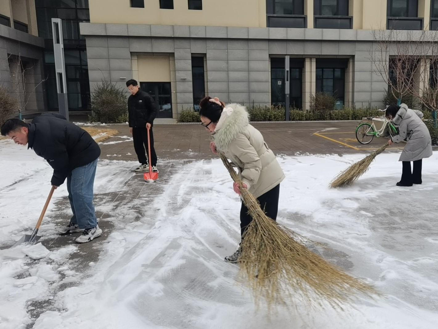 于院楼附近开展除雪活动,91探花