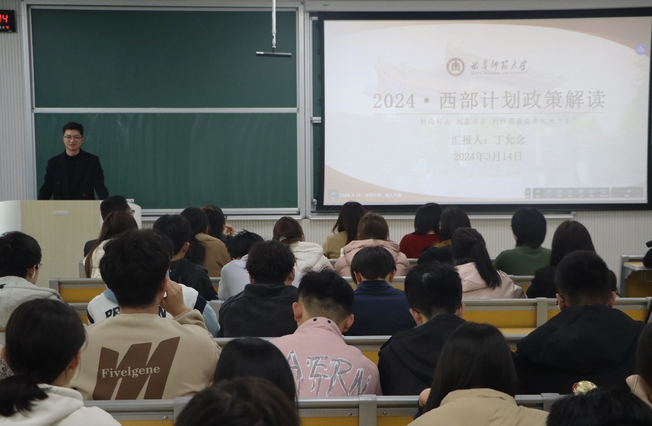 于格物楼B105召开了大学生志愿活动西部计划宣讲会。学院团委书记丁允念主持会议,党委副书记范瑞红、辅导员武玉龙、相青、于媚媛、赵兴卯、洪亚玲出席本次活动,91探花
