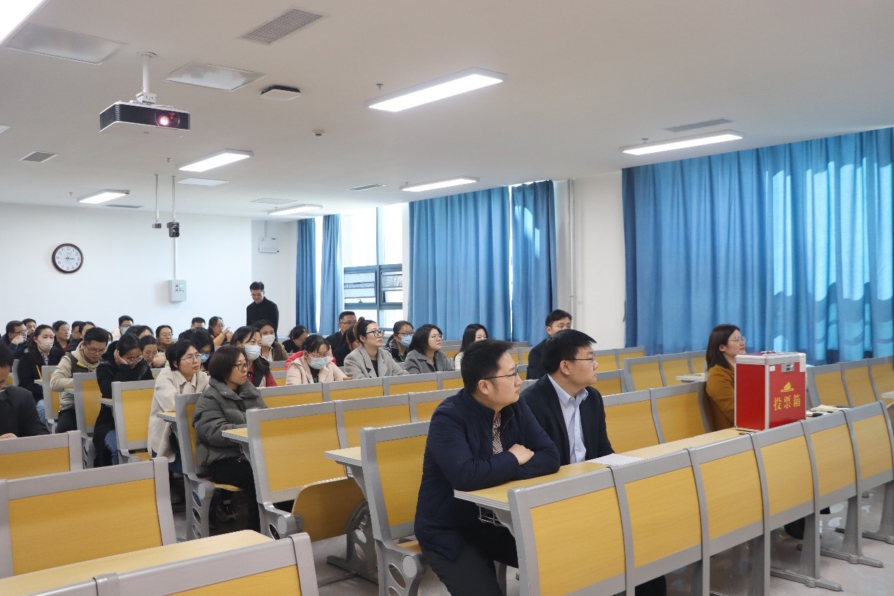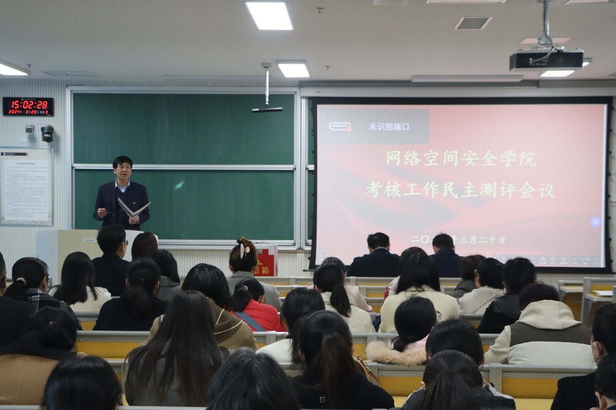 于格物楼B215教室召开考核工作民主测评会议。学院党委书记田云飞、院长王茂励、党委副书记范瑞红、副院长马旭以及全体教职工参加会议。会议由田云飞主持。