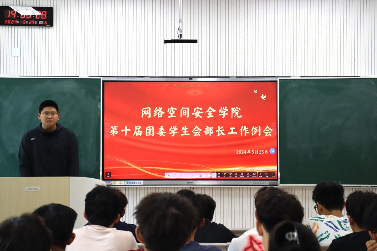 第十届团委学生会部长工作例会于格物楼B101顺利召开。学院团委学生会主席刘子新主持会议,团委学生会全体部长参加会议。