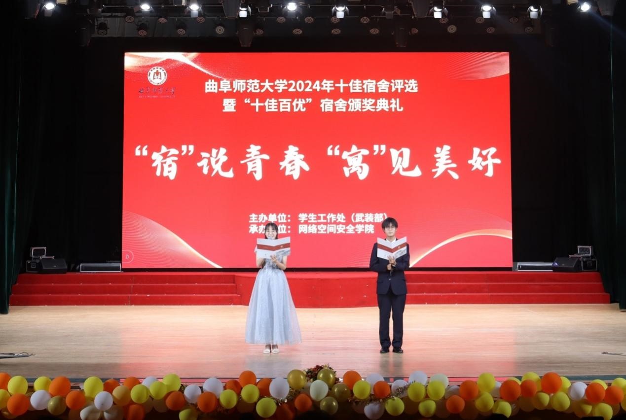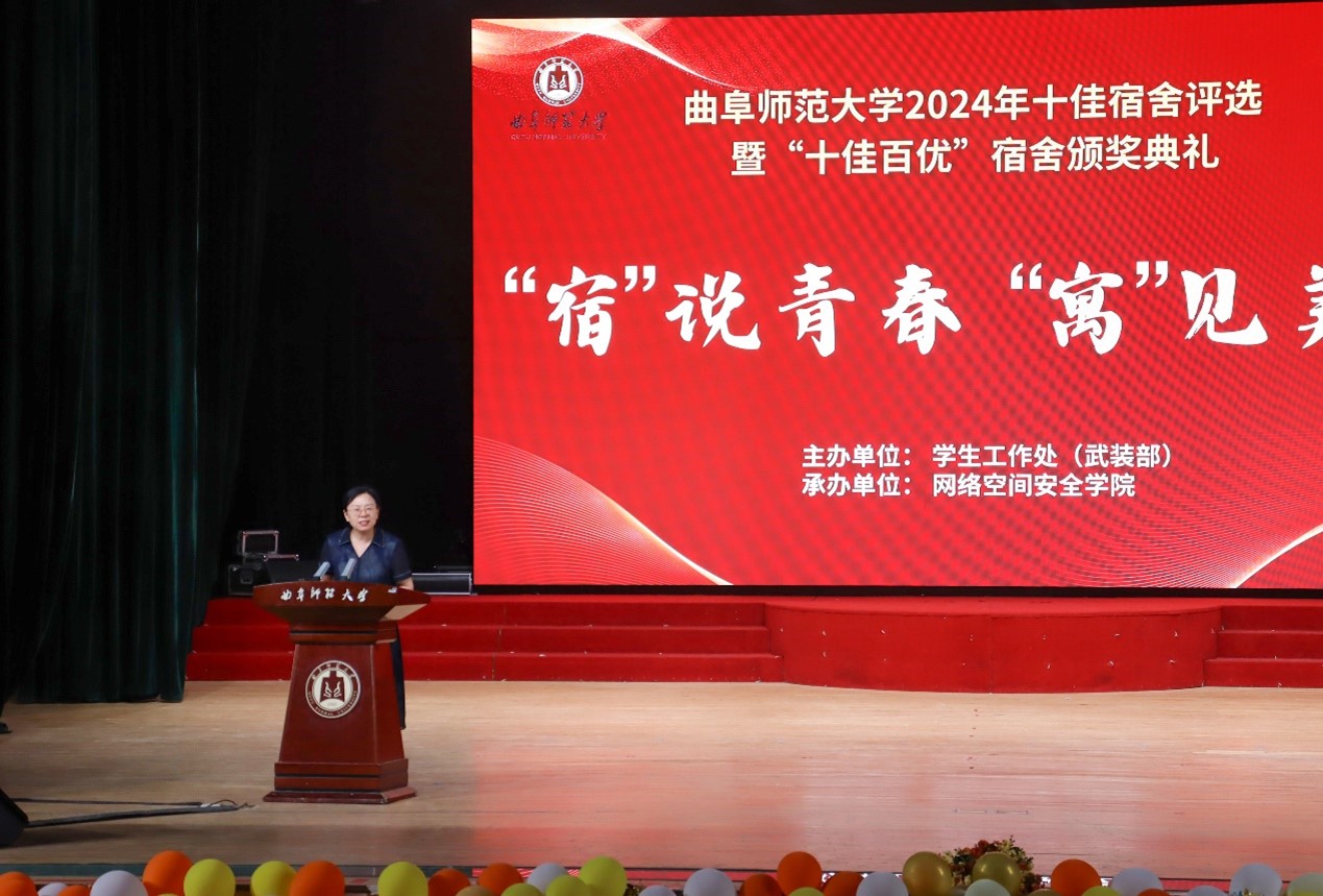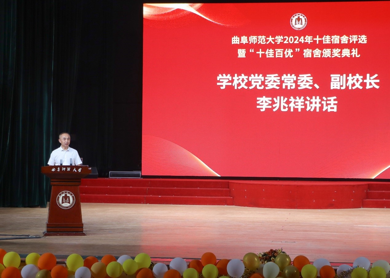 曲阜校区2024年“‘宿’说青春,‘寓见美好’”十佳宿舍评选暨“十佳百优”宿舍颁奖典礼在大学生活动中心隆重举行。学校党委常委、副校长李兆祥,学校学生工作处处长姜美颖,校团委书记孔轶众出席本次活动。