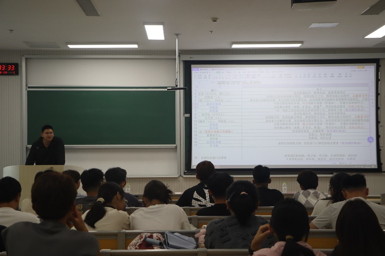 2024级迎新工作部署会议于格物楼B106教室顺利召开。学院团委学生会主席刘子新主持会议。