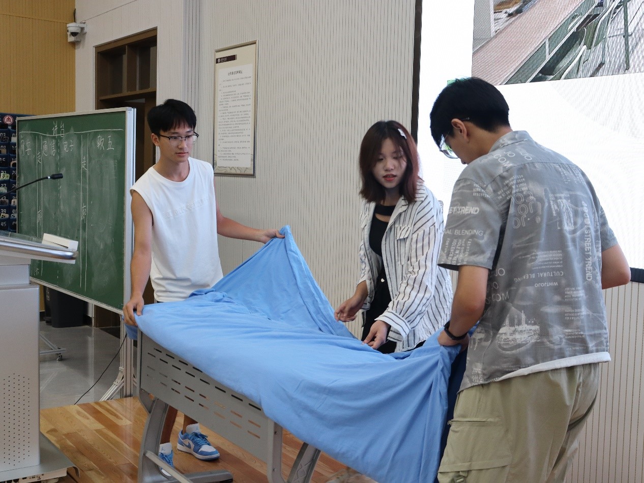 活动伊始,陈士洁详细讲解了宿舍卫生的检查标准,特别提醒与会学生要着重注意柜子未关闭、门口堆放杂物、地面头发水渍等在检查过程中常出现的问题。随后,宿卫部针对违规电器、军训内务、宿舍晚归等问题详细解读,帮助新生迅速熟悉宿舍检查标准和安全知识,营造安全舒适的校园生活。活动最后,陈士洁为新生讲解了将被子叠成“豆腐块”的正确方法,包括如何选择被子、如何平整地铺放、如何调整被子的细节等,并邀请新生上台展示学习成果。