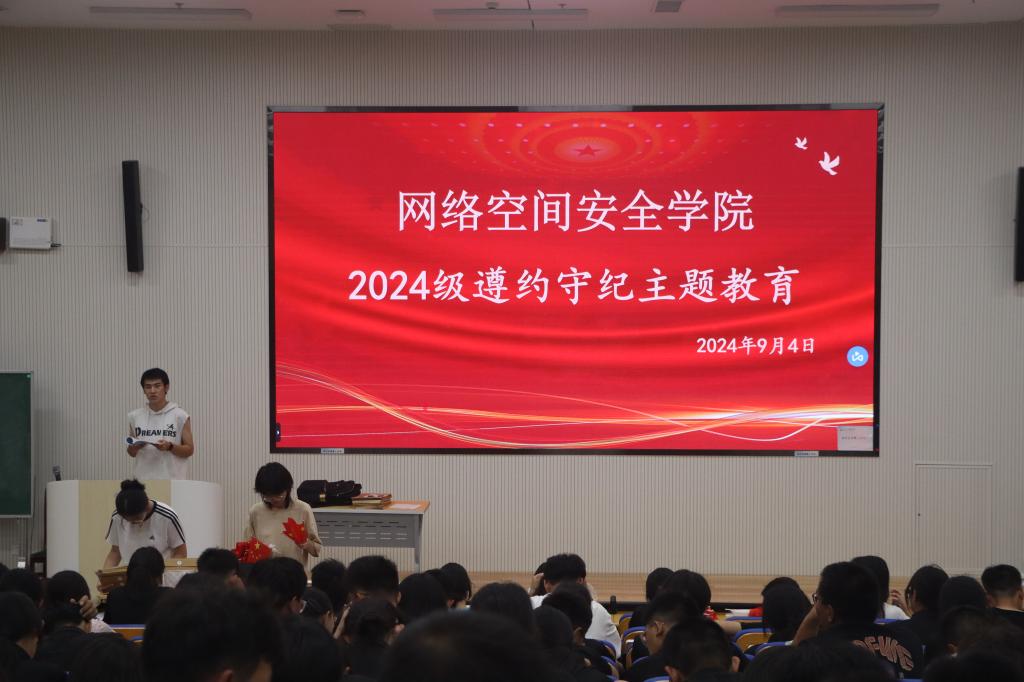 遵约守纪主题教育活动于致知楼B102教室、B201教室顺利开展,2024级新生带班李紫绪、张轩主讲,2024级全体新生参加。