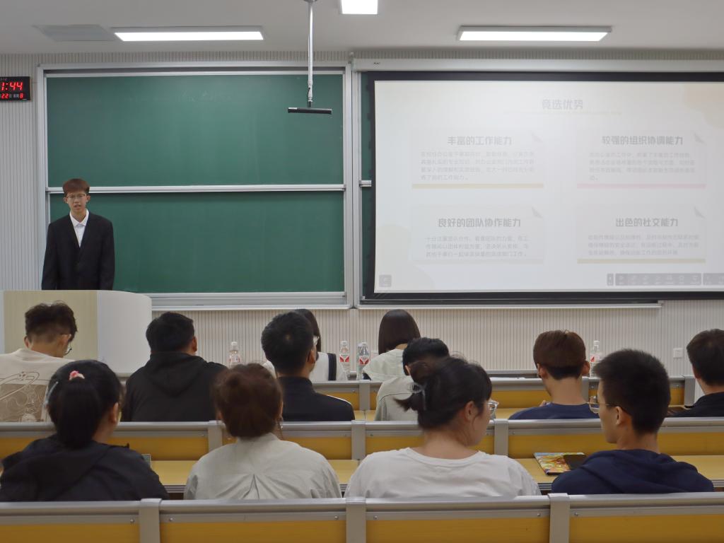 团委学生会副部换届竞选工作于格物楼B105、B106教室开展,学院学生会主席团和团委学生会各部门部长参加并担任评委。