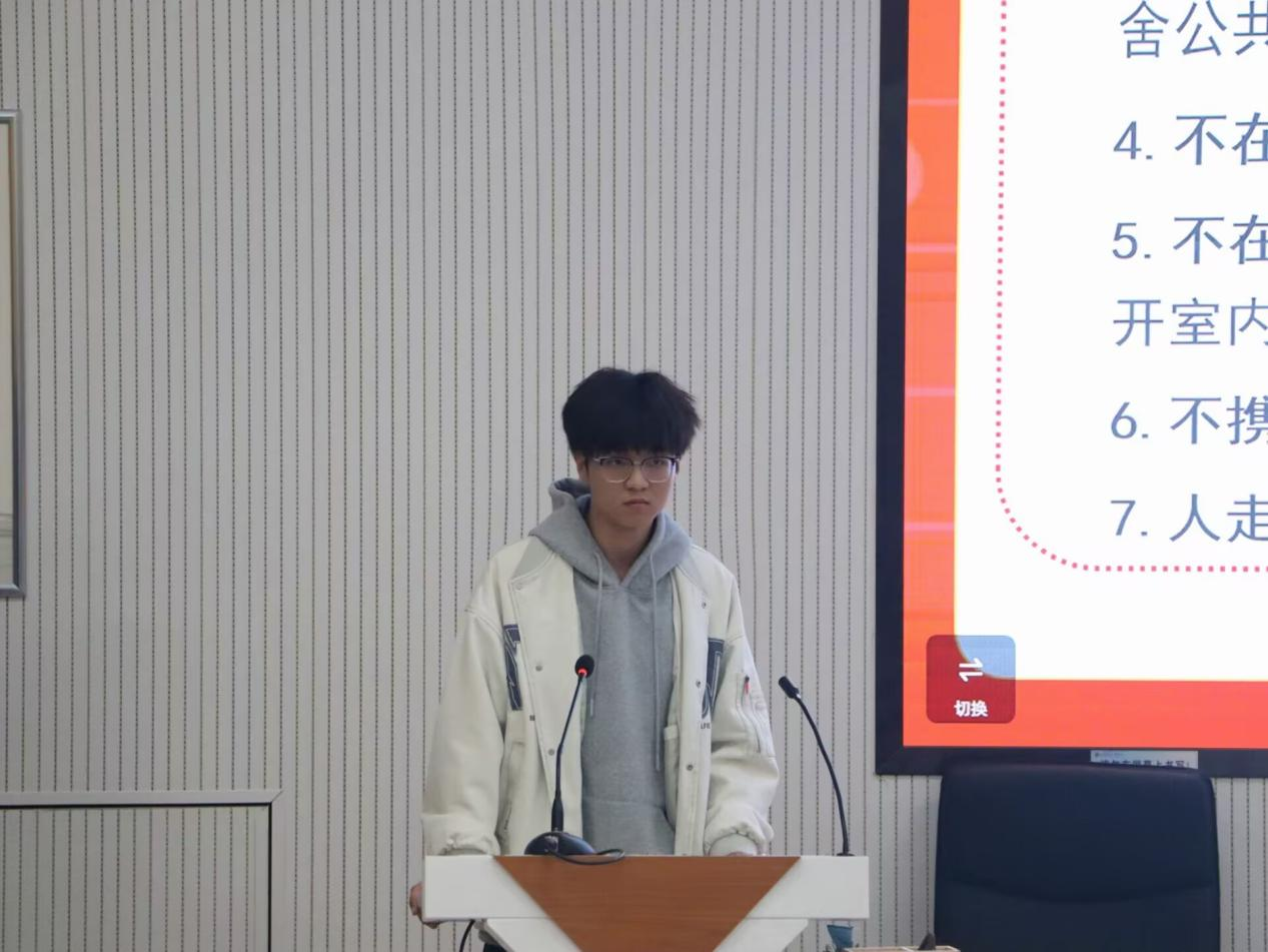 “寝室防火安全知识教育主题会议”于致知楼b201、b202开展。网络空间学院全体寝室长参与,宿卫部副部陈士洁、孔浩天担任主讲人。