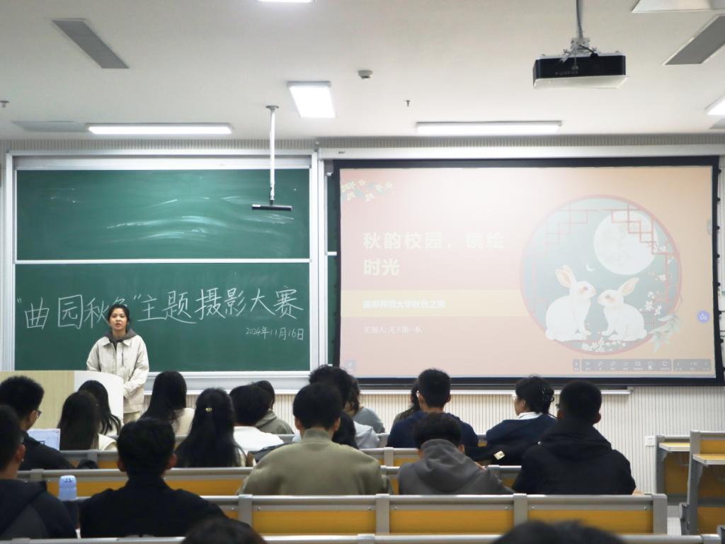 “曲园秋色”摄影大赛于格物楼B105教室顺利开展。学院团委学生会宣传部部长王瑞相、王娜,新媒体中心部长徐婧、程名担任评委,宣传部副部长李志、新媒体中心干事张怡晴主持此次活动。