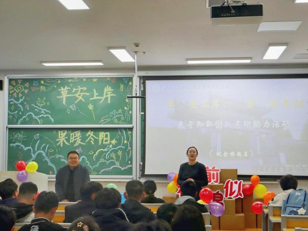 夫子知新团队“苹”安上岸,“果”暖冬阳考研助力活动于格物楼B110教室顺利举办。夫子知新团队负责人周子力,辅导员于媚媛、赵兴卯、洪亚玲参加活动。