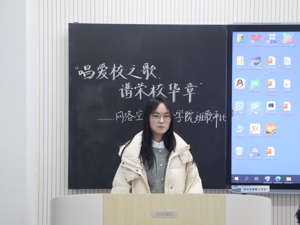 班歌评比分为三个阶段:线下班歌演唱、线上视频剪辑、线下创作理念讲解与评比。在线下班歌演唱阶段,各班级文艺委员认真筹备,精选了富有正能量、积极向上的歌曲作为班歌,并由宣传委员负责记录活动精彩瞬间。寒假期间,各班级负责人充分利用假期,对拍摄素材进行了细致地剪辑与整理,成功制作出独具特色的班歌视频。在线下评比环节,各班级负责人就班歌作品的创作理念及特色元素进行阐述。文艺部成员依据既定标准,从作品质量、创意表现及现场讲解等多个维度进行了综合考量与评分。最终,23级软件工程一班、三班、物联网工程班及24级软件工程一班、五班、通信工程班凭借出色表现荣获“优秀班级”称号,相应班级负责人被授予“先进个人”称号。