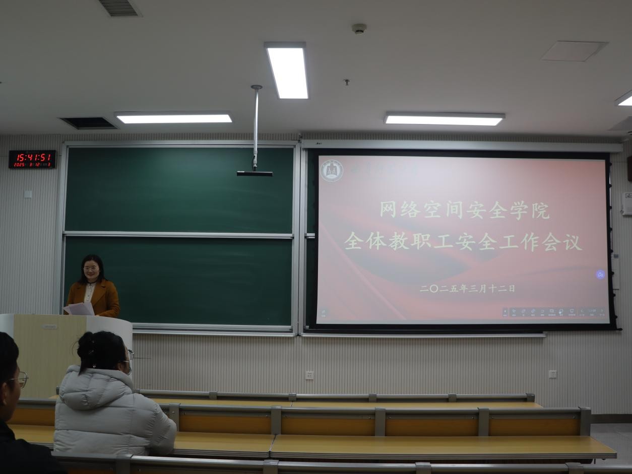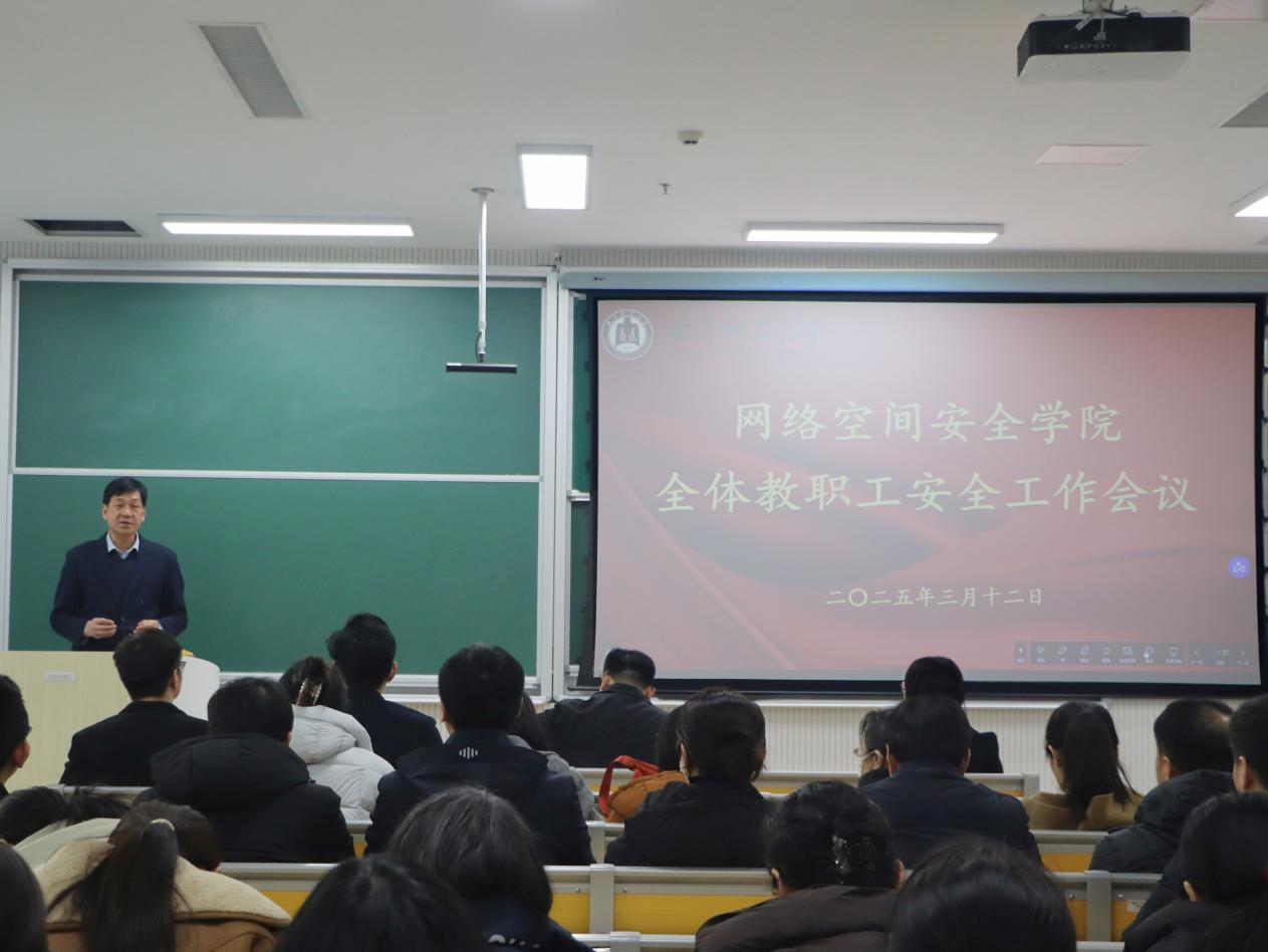 全体教职工安全工作会议于格物楼B107召开。学院党委书记田云飞、院长王茂励、党委副书记范瑞红、副院长马旭及全体教职工参会。会议由田云飞主持。