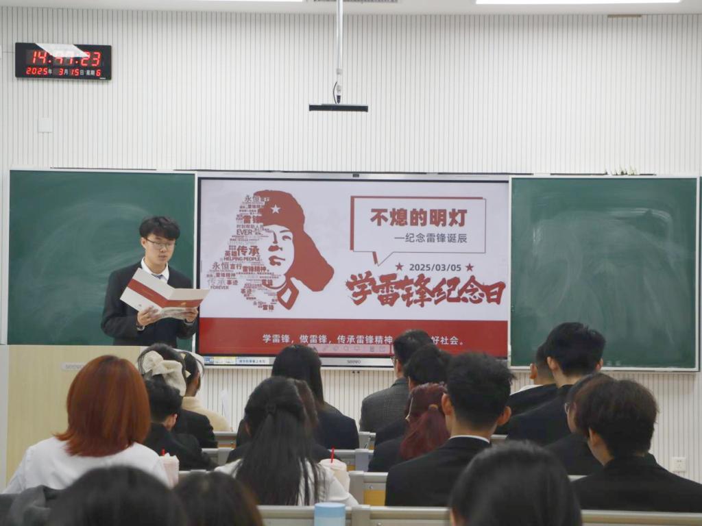 “传承雷锋精神”主题演讲比赛于格物楼B101教室举行。学院团委书记丁允念、学生会主席刘子新、团委副书记杨蓓茜、新媒体中心部长程名出席活动并担任评委。
