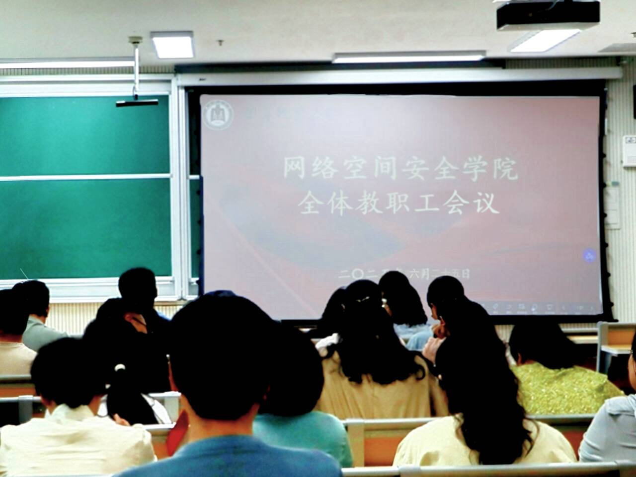 全体教职工会议于格物楼B215教室召开,学校党委常委、副校长陈刚,学院党委书记田云飞,院长王茂励,党委副书记范瑞红,副院长马旭及全体教职工参加本次会议。